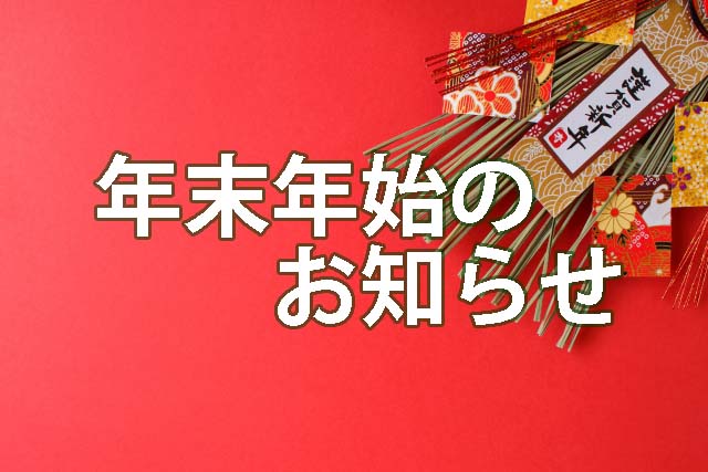 お店・宴会 年内は12月30日まで、年明けは1月9日より営業